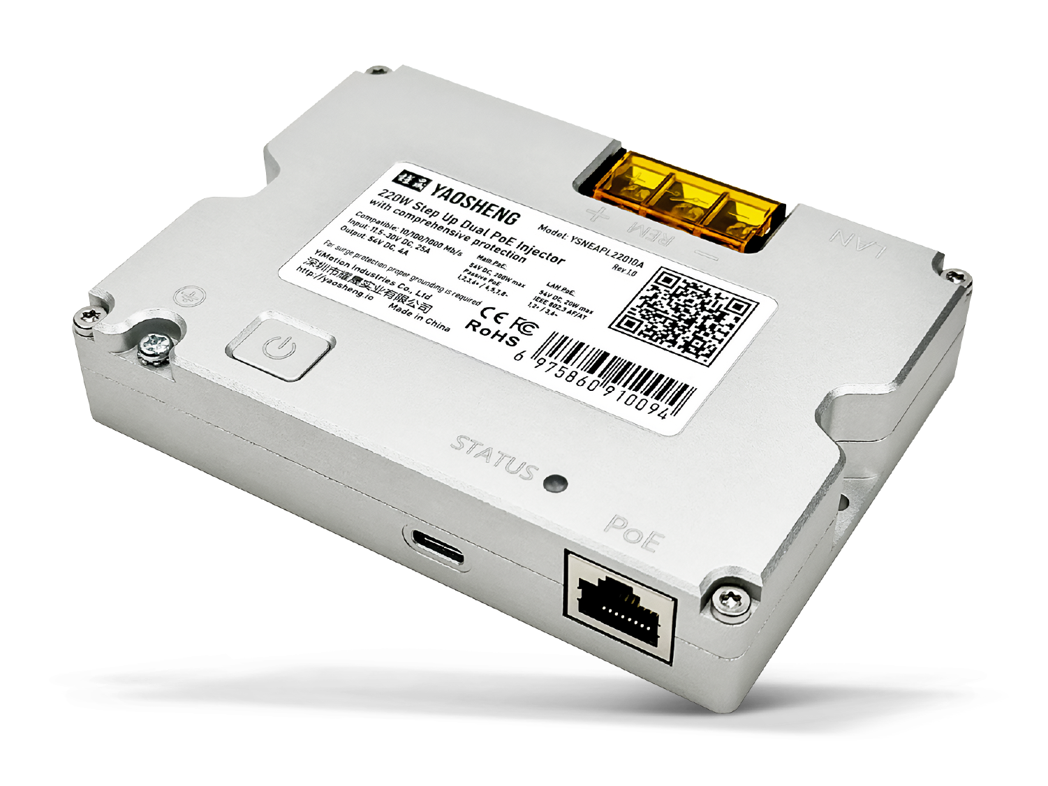 Enthält einen 220W PoE-Injektor (200W passives PoE auf der Antennen-Seite, 20W auf der LAN-Seite) und einen Boost-Converter von 12/24V!