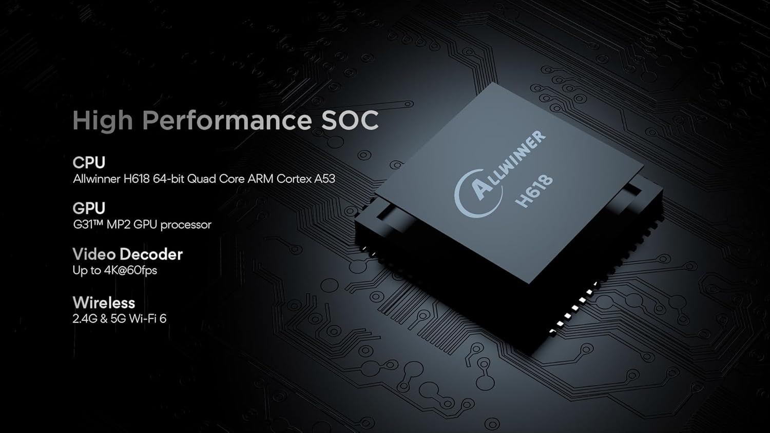- Neueste Chipset-Technologie für flüssige Bedienung (Allwinner H618)