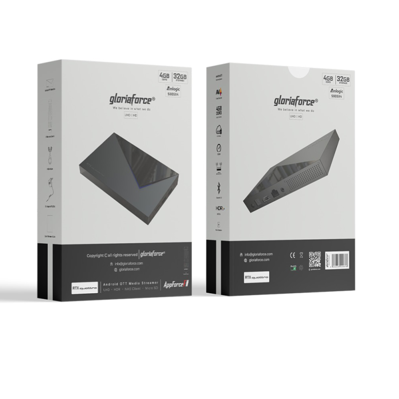 Der Gloriaforce RTX Quattro liefert mit seiner hervorragenden Leistung und dem superschnellen Zapping-Modus mit Gloriaforce AppForce II Applikation eine perfekte Kombination aus Geschwindigkeit und Zuverlässigkeit. Erleben Sie den Gipfel fortschrittlicher Technologie mit der GloriaForce RTX Quattro, der ultimativen Android-TV-Box. Dieses bemerkenswerte Gerät basiert auf Android 11 und kombiniert modernste Funktionen mit unauffälligen Spezifikationen und bietet eine beispiellose Leistung. Die 4GB DDR3 RAM Konfiguration zusammen mit 32GB Speicher sind ausgezeichnet, um Spiele oder Filme herunterzuladen und Ihre Lieblingsprogramme aufzuzeichnen.