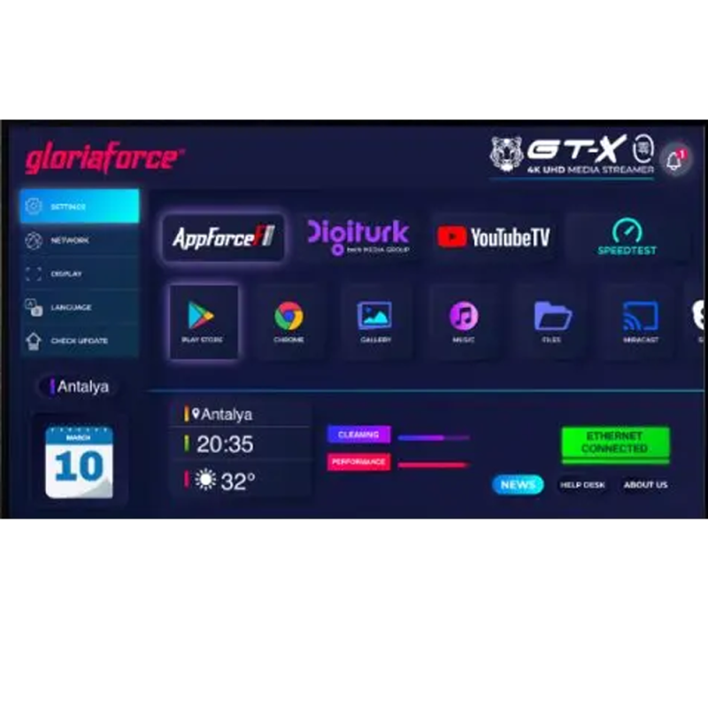 Der Gloriaforce RTX Uno liefert mit seiner hervorragenden Leistung und dem superschnellen Zapping-Modus mit Gloriaforce AppForce II Applikation eine perfekte Kombination aus Geschwindigkeit und Zuverlässigkeit. Die 2GB DDR3 RAM Konfiguration zusammen mit 16GB Speicher sind ausgezeichnet, um Spiele oder Filme herunterzuladen und Ihre Lieblingsprogramme aufzuzeichnen.