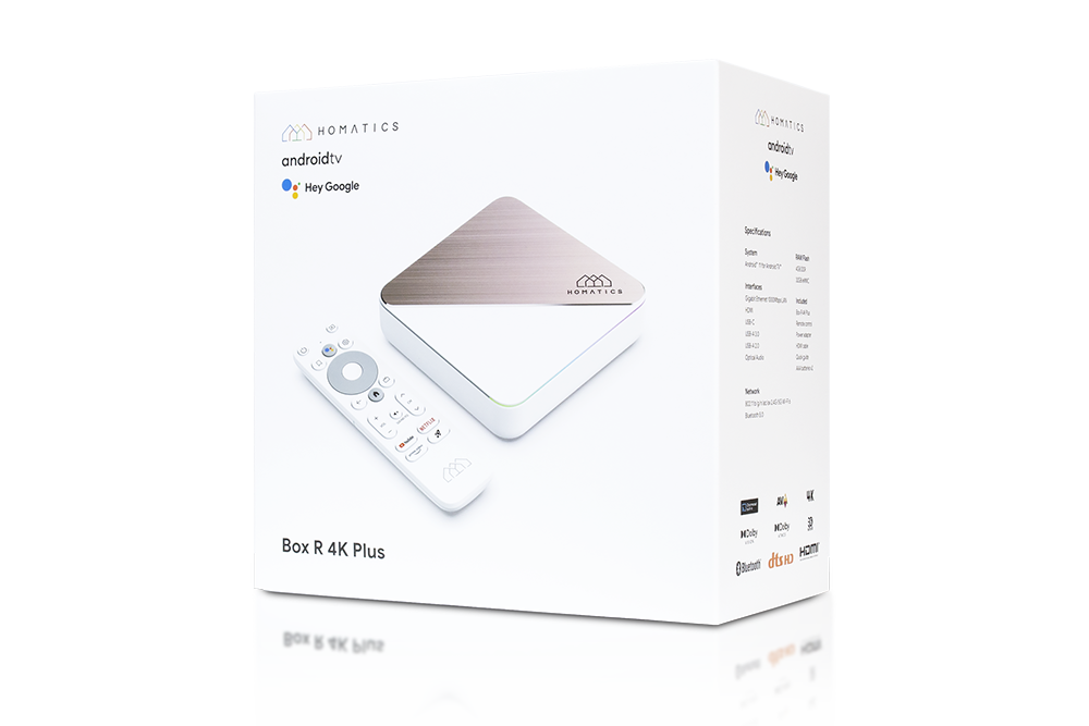 Mit dem neuen Homatics Box R 4K Plus TV Mediaplayer können Sie hochwertige Inhalte ganz einfach auf dem großen Bildschirm erleben. Mit der Sprachfernbedienung haben sie einfachen Zugriff auf den Google Assistant und können mithilfe der Kurzbefehle auf der Fernbedienung ihre Lieblingsapps aufrufen.