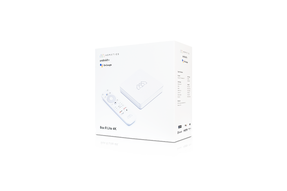 Die Homatics Box R Lite ist eines der leistungsstärksten 4K -Multimediageräte auf dem Markt, das einen gewöhnlichen Fernseher in einen leistungsstarken Smart-TV verwandelt. Als Betriebssystem dient das offizielle Android Betriebssystem. Für schnelle Reaktionen sorgt der leistungsstarke Amlogic S905Y4- Prozessor für höhere Geschwindigkeit und ein besseres Benutzererlebnis, der von bis zu 2 GB DDR-RAM und 32 GB eMMC-Flash unterstützt wird.