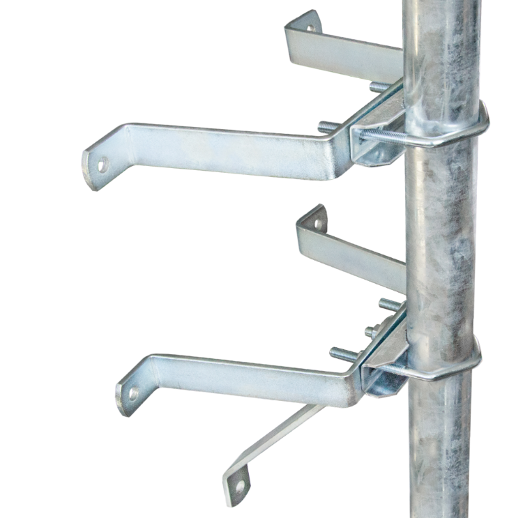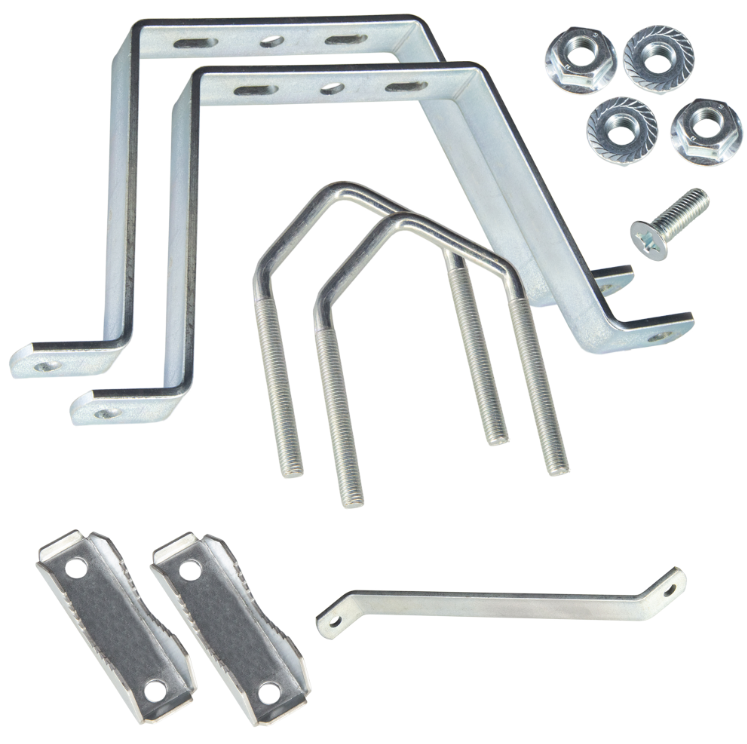 Das Set besteht aus 2 sehr robusten Traversen, zwei Zahnschellen, zwei U-Bügeln und einem dritten Arm zur zusätzlichen Stabilisierung für Mastrohre von 30-60 mm Durchmesser.