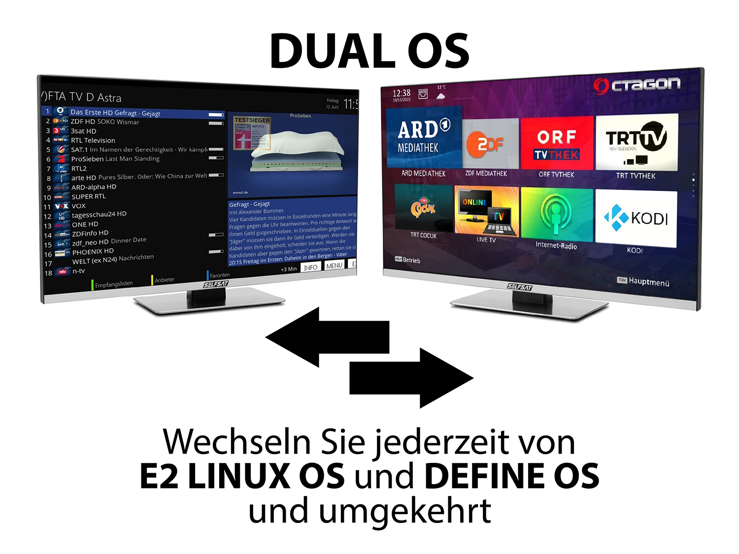 - DUAL OS: E2 Linux OS Betriebssystem & OCTAGON Define Linux OS