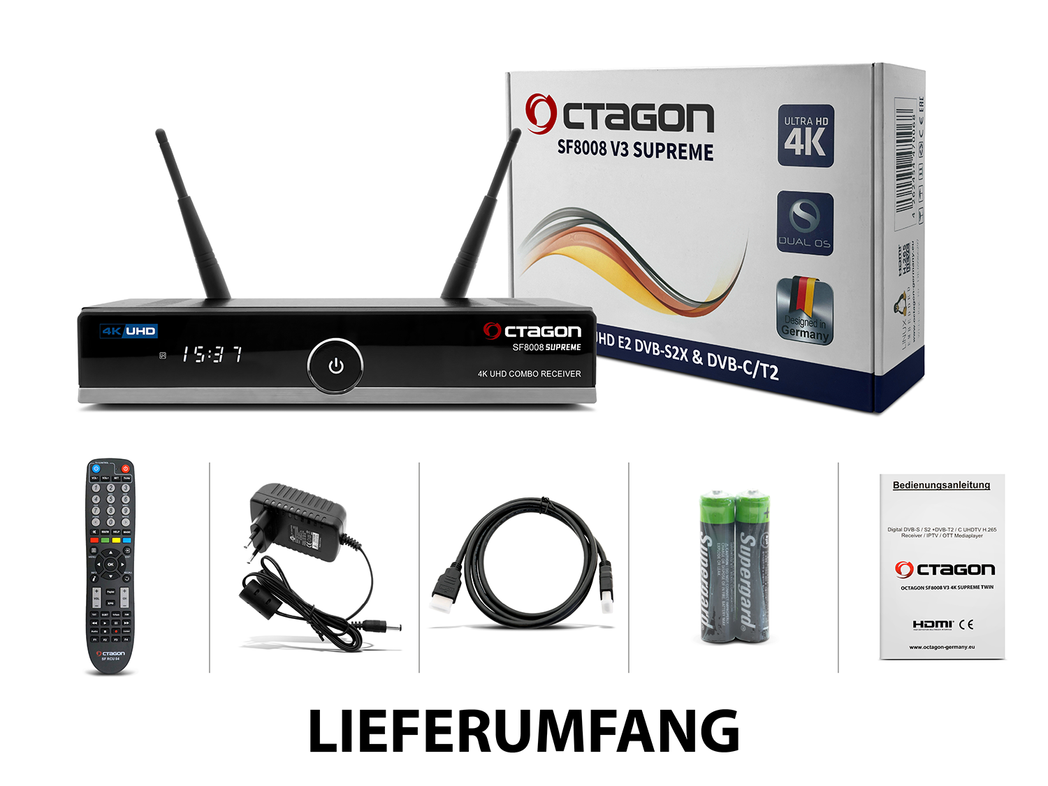 Produktinformationen "Octagon SF8008 V3 Supreme 4K Twin Sat-Receiver (DVB-S2X & DVB-C/T2 Combo) ohne SSD"