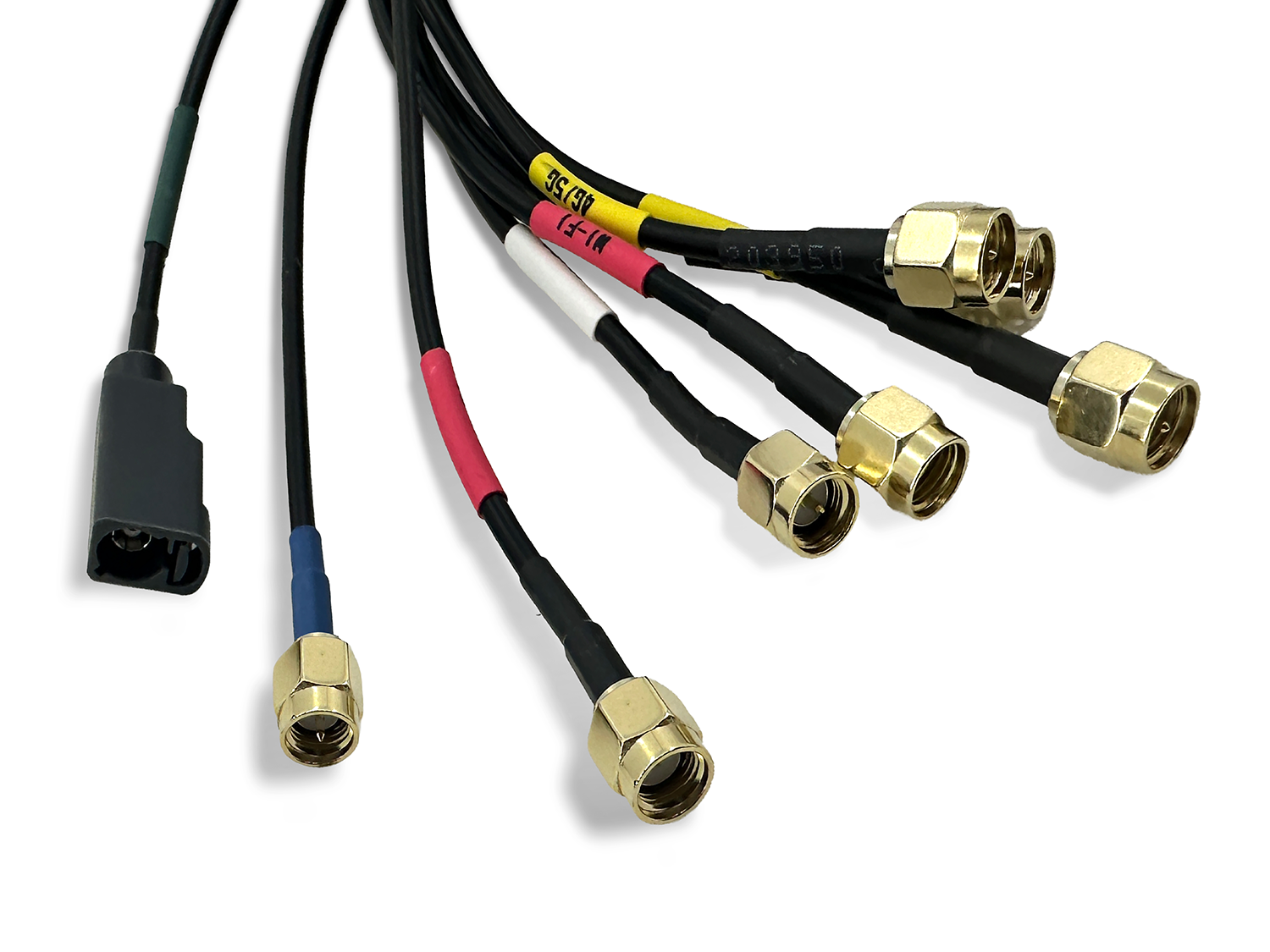 - Kabel: 4 x RG174, Länge 1 m (1 m oder 2 m Kabelverlängerung mit 1 WLAN-Antennen-Kabel optional erhältlich)