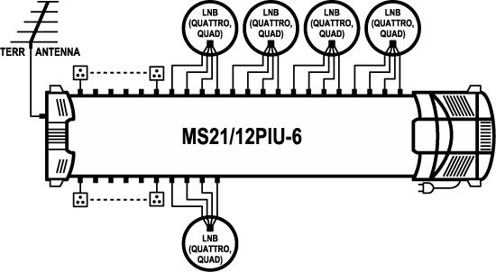 5-Satelliten(20 Ebene) Kompakt Multischalter mit integriertem Netzteil sind für die Verteilung von Terrestrischen und Satelliten-Signale bis zu 12 Teilnehmer.