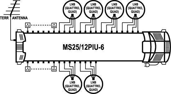 6-Satelliten(24 Ebene) Kompakt Multischalter mit integriertem Netzteil sind für die Verteilung von Terrestrischen und Satelliten-Signale bis zu 12 Teilnehmer.