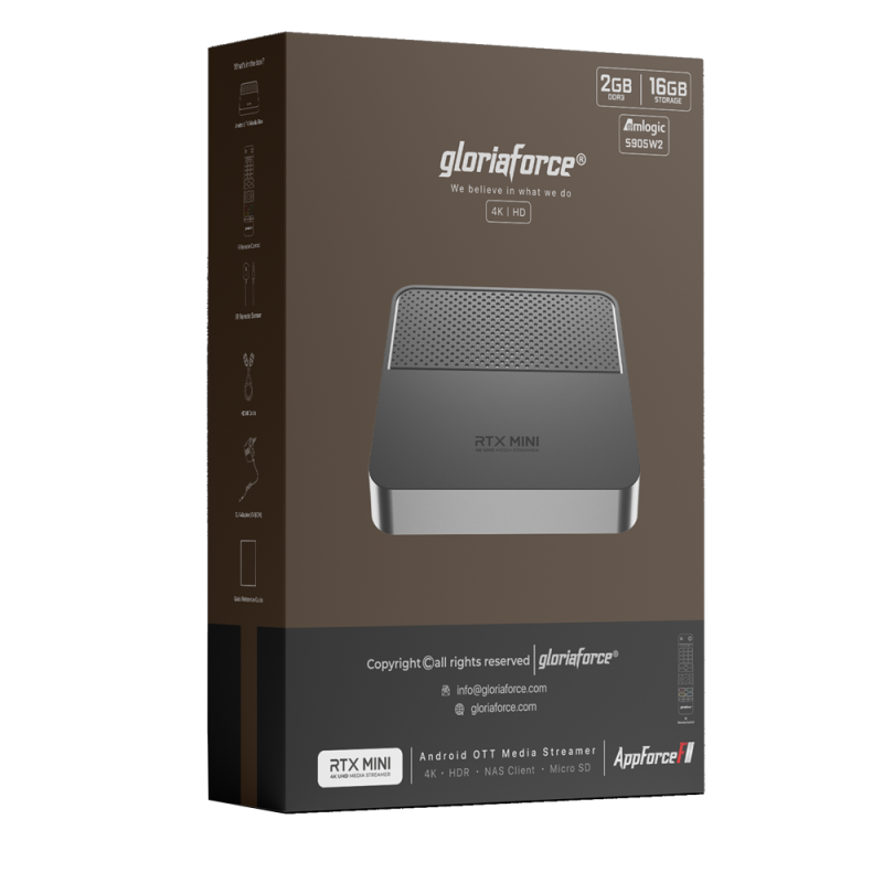 Gloriaforce RTX MINI 4K UHD Android 11 IP-Receiver HDR10+, Dual-WiFi, LAN, MicroSD, HDMI