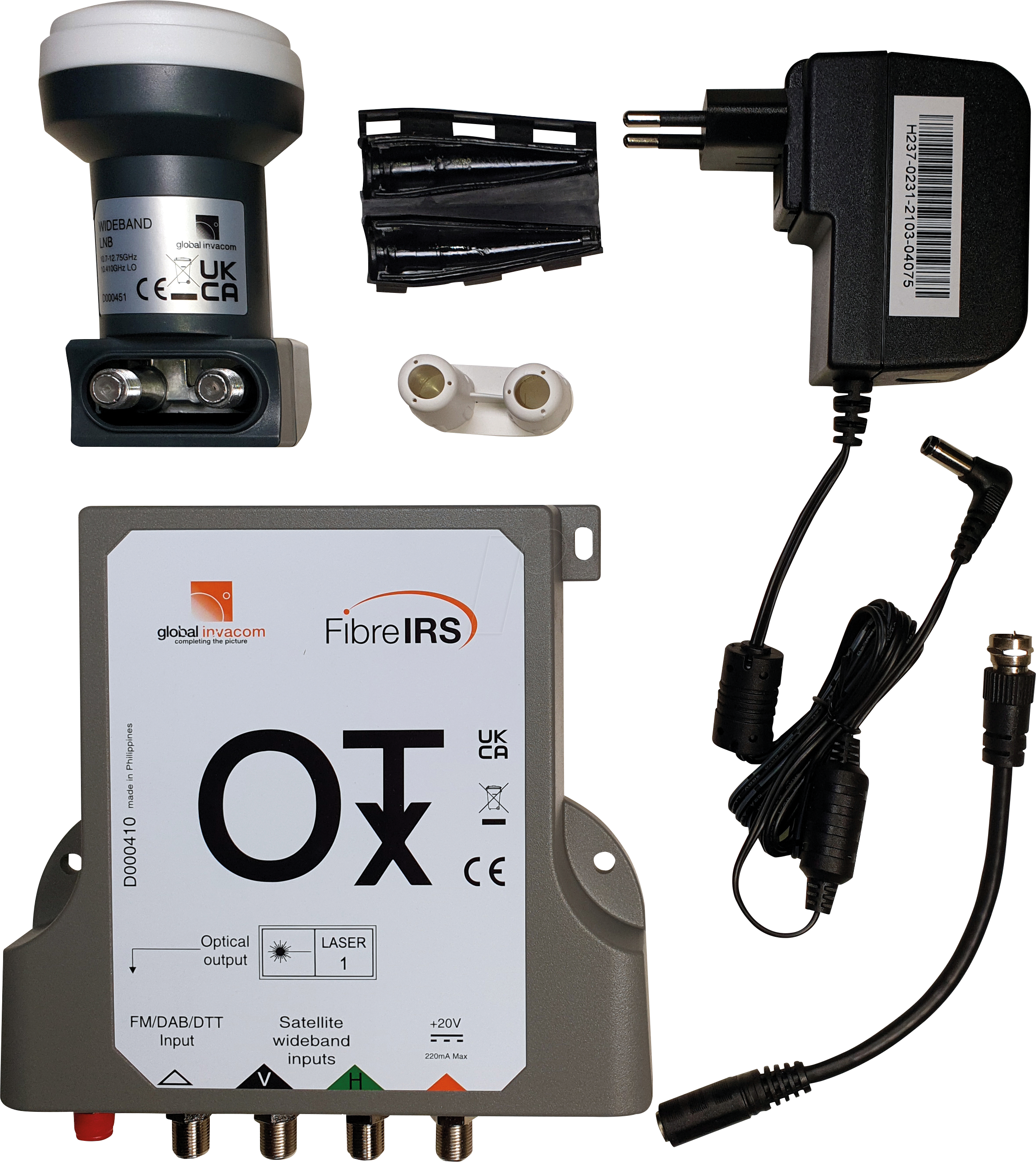 Im Set enthalten ist ein Wideband LNB und die OTX Einheit mit einer optischen Wellenlänge von 1310 nm.