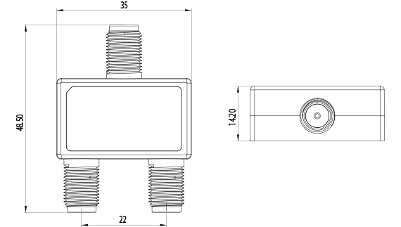 - Entkopplung zwischen den Anschlüssen: 5-47MHz : 8dB /47-2400MHz : 16dB min.