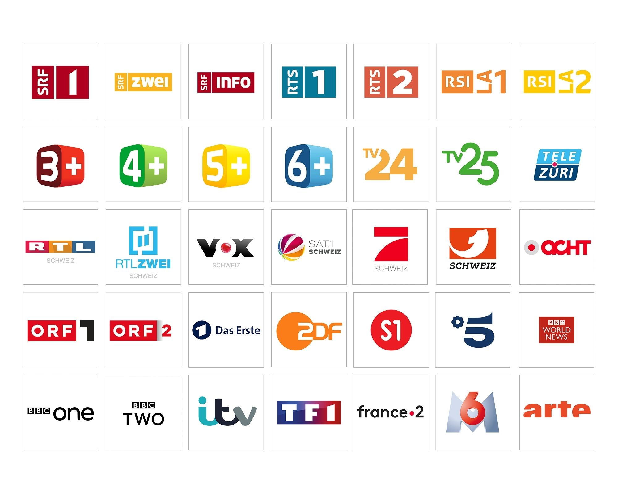 - RTL CH, ProSieben CH, Sat.1 CH, RTL ZWEI CH, VOX CH, kabel eins CH