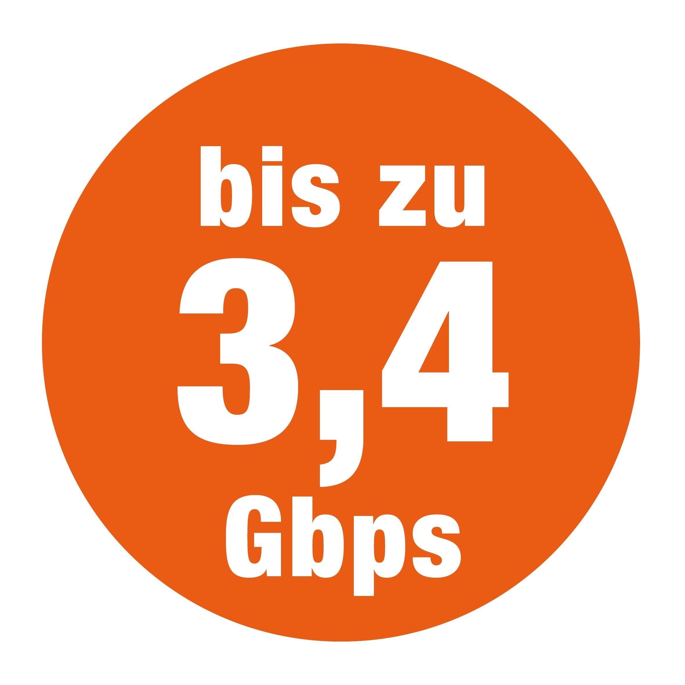 - Unterstützte Mobilfunk-Generationen: 5G (bis 3,4 Gbps), 4G LTE (Cat 19 bis 1,6 Gbps), 3G (bis zu 42 Mbps)