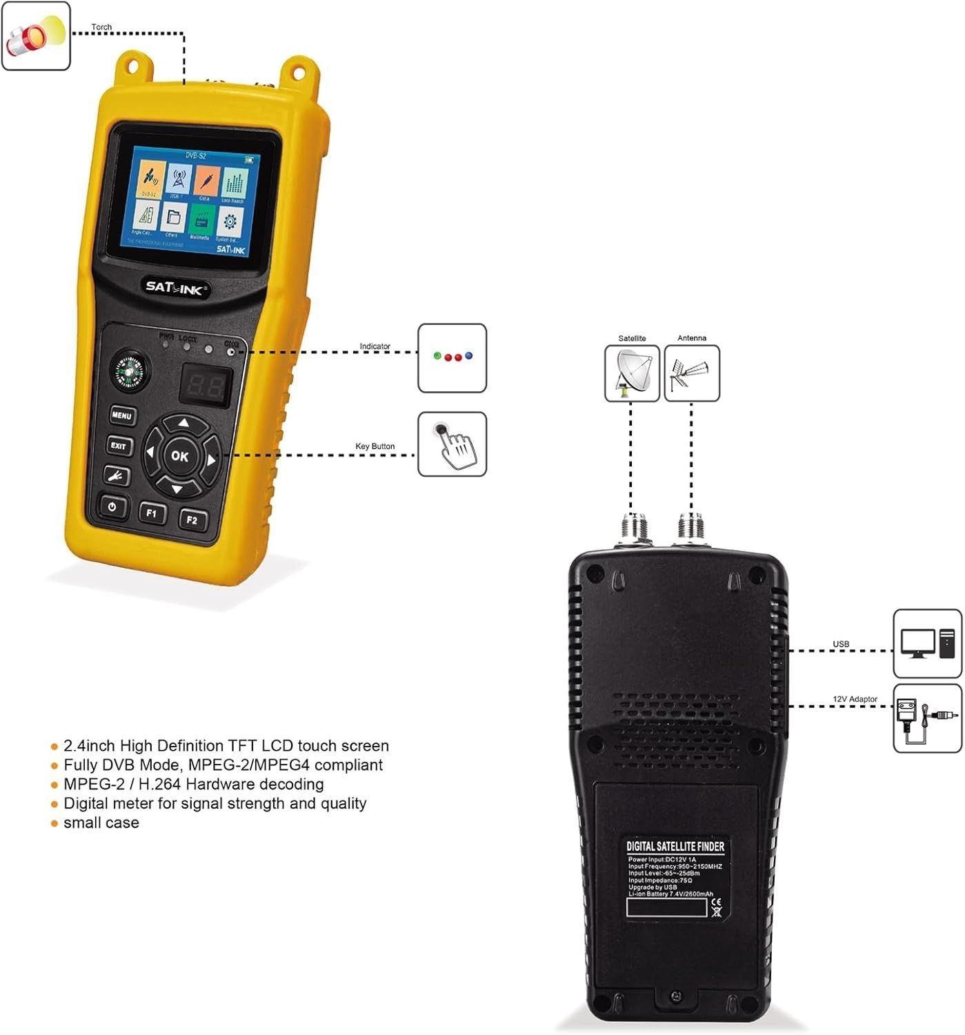 - Digitales Satellitenmessgerä: ST-5032 ist ein DVB-S2/S-, DVB-T- und DVB-C kompatibler tragbarer Satellitenfinder. Mit seiner kompakten Größe, seinem geringen Gewicht, seiner intuitiven Benutzeroberfläche und seiner umfangreichen Funktionen bietet der Finder alle Funktionen, die für die Installation und Überprüfung des digitalen TV-Empfangs in Wohnhäusern oder Mehrfamilienhäusern erforderlich sind.