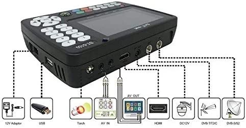 Die Lieferung erfolgt inklusive Gummischutzhülle, Steckernetzteil, 12V Anschlusskabel, AV-Kabel (3,5mm Klinke auf 3x Cinch) und 2x F-Verbinder (zum Einschrauben in die Messbuchsen RF / ANT). Um eine Satelliten-Antenne schnell auf den gewünschten Satelliten ausrichten zu können, sind viele Satelliten bereits vorprogrammiert. Eine Senderliste für Astra 19,2 ist bereits vorab auf das Gerät aufgespie