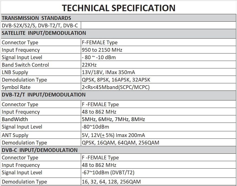 - DiSEqC 1.0, 1.1, 1.2, USALS