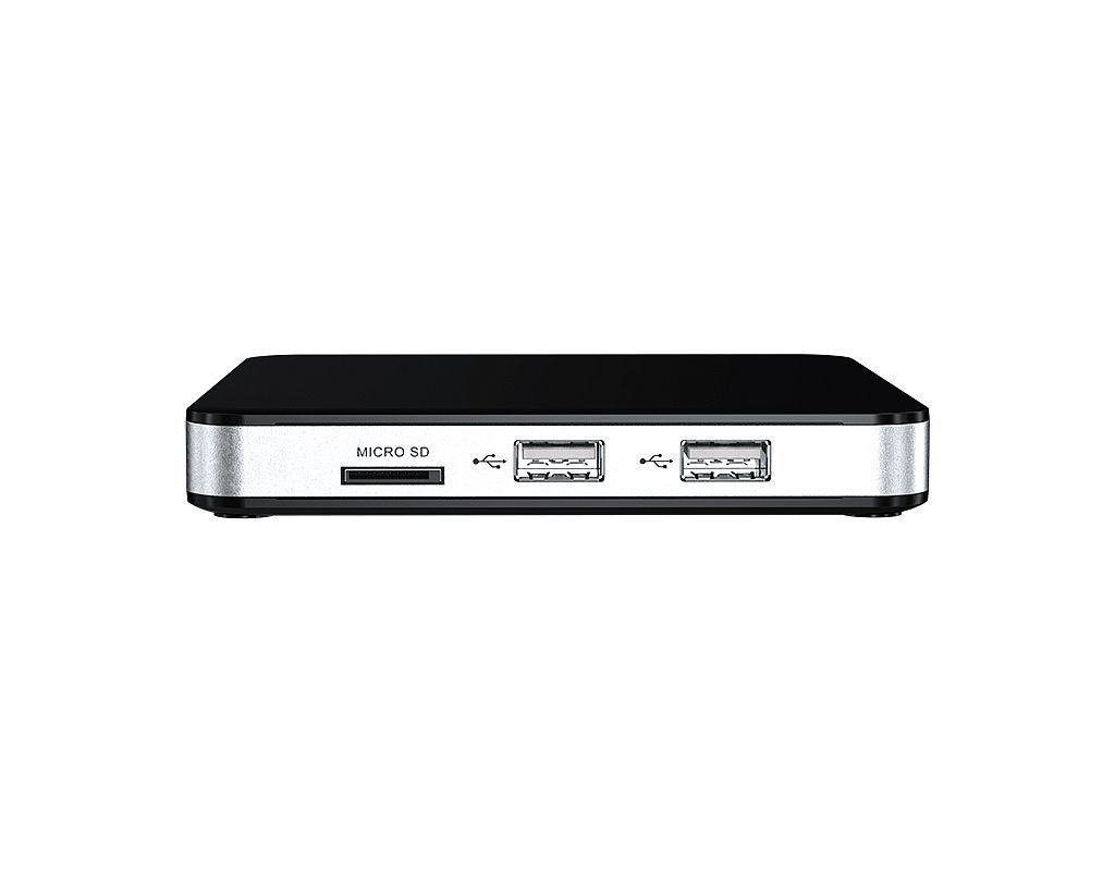- Anschlüsse: HDMI, AV, Ethernet, 2x USB, MicroSD Card, ext. IR