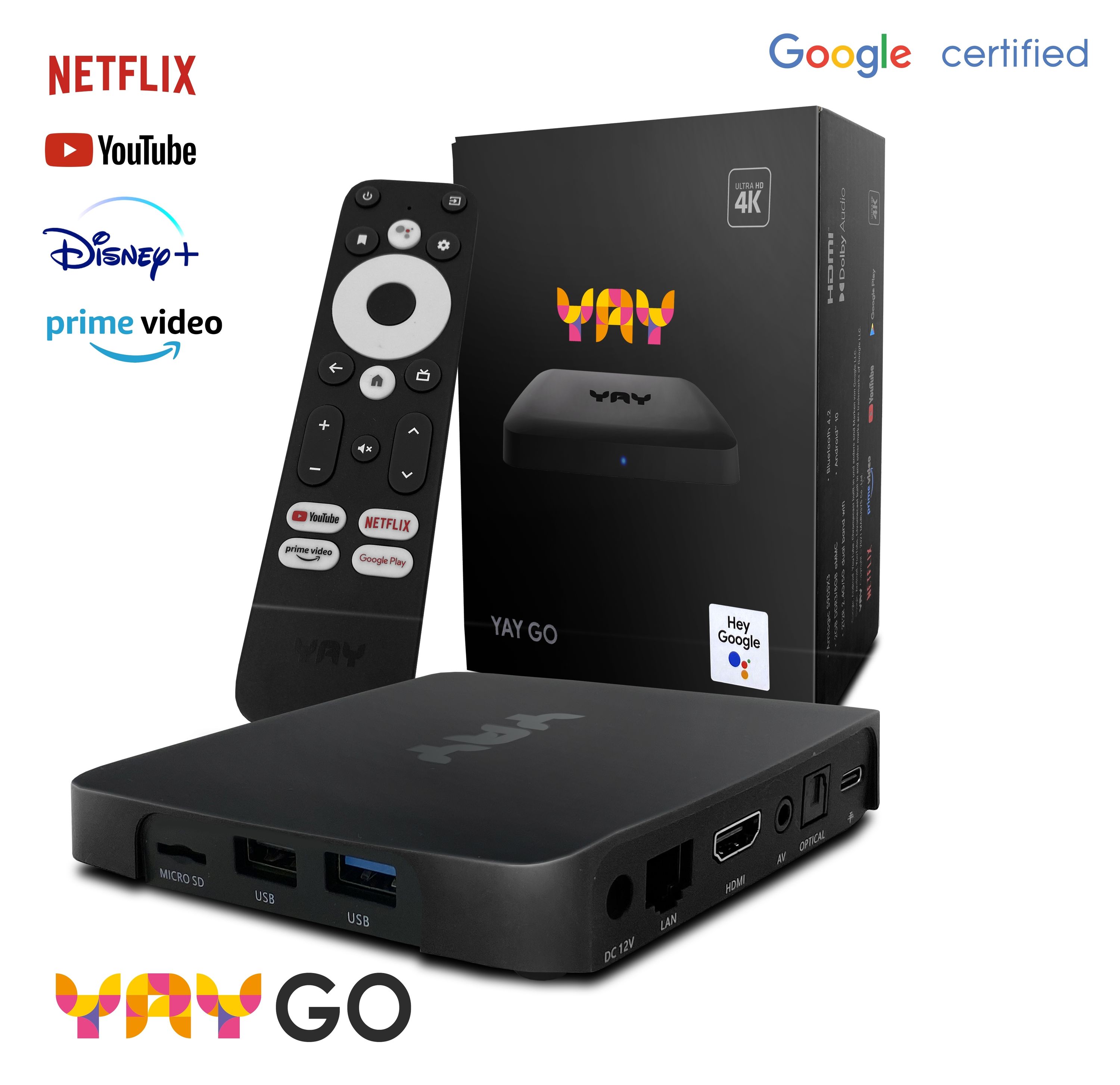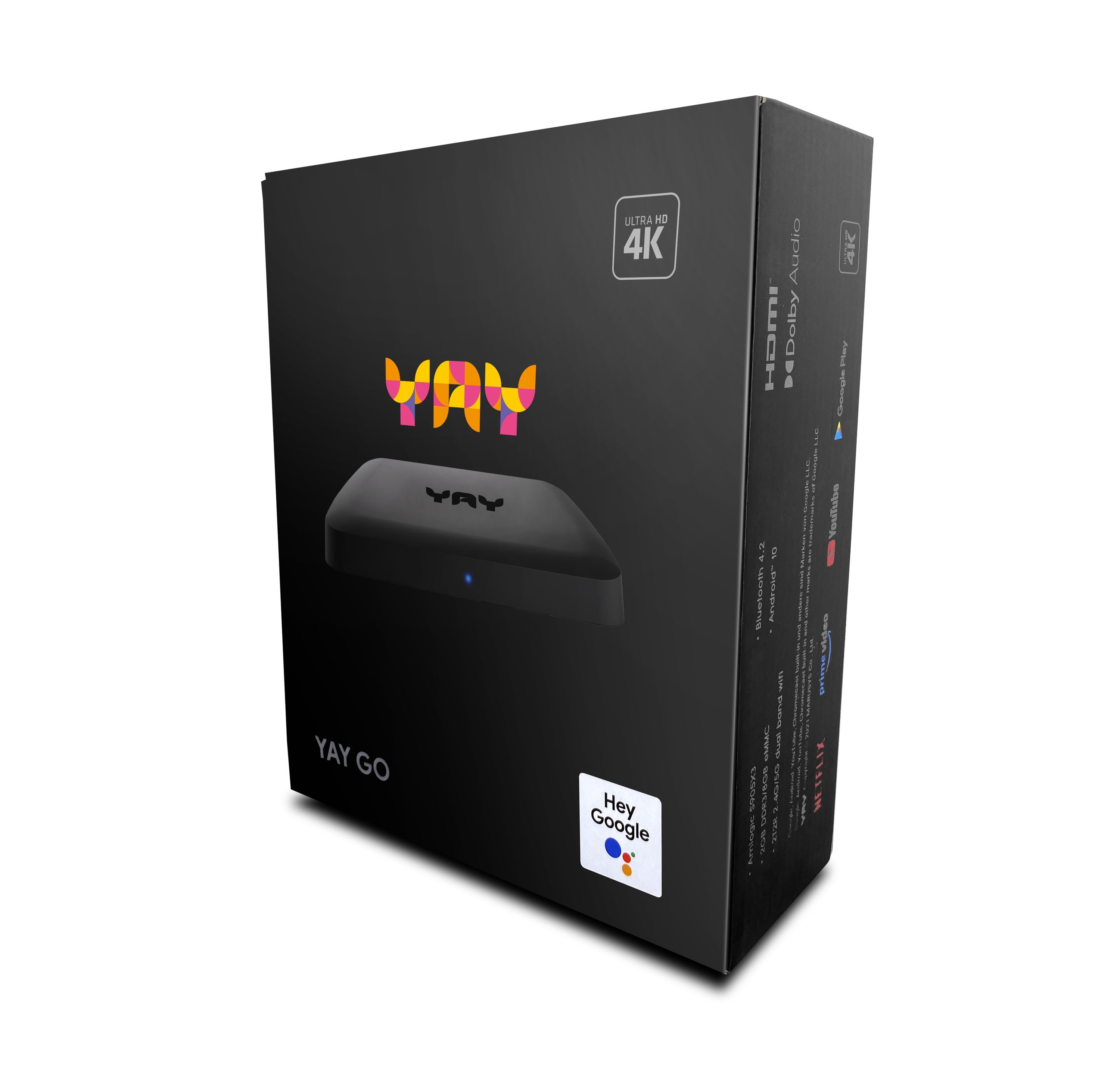 - Deine YAY GO Streaming Box zeigt Videos bis zu 4K Ultra HD. Das heißt für dich – hoher Kontrast, satte Farben und großartige Bildqualität. Und das in vierfacher Schärfe im Vergleich zur Standard Auflösung.